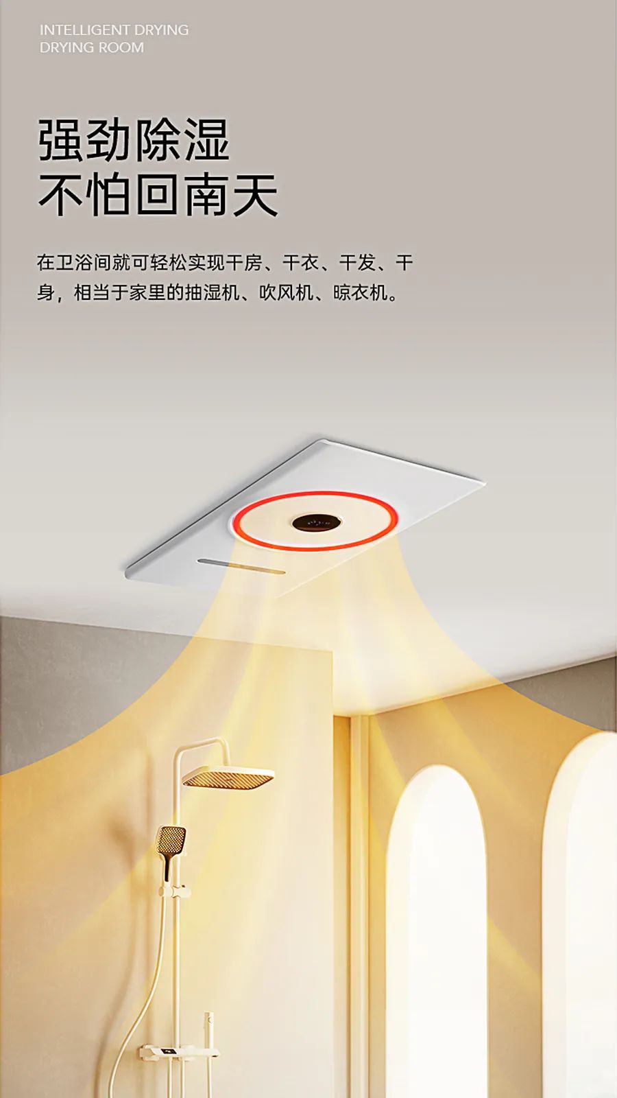 卫生间常年比较潮湿,家里的老人小孩一不小心易滑倒,安全隐患增加。360聚能环浴霸它的干燥功能也是非常优秀的,只需一键,就能够迅速带走浴室水分,干衣干房,清爽沐浴。